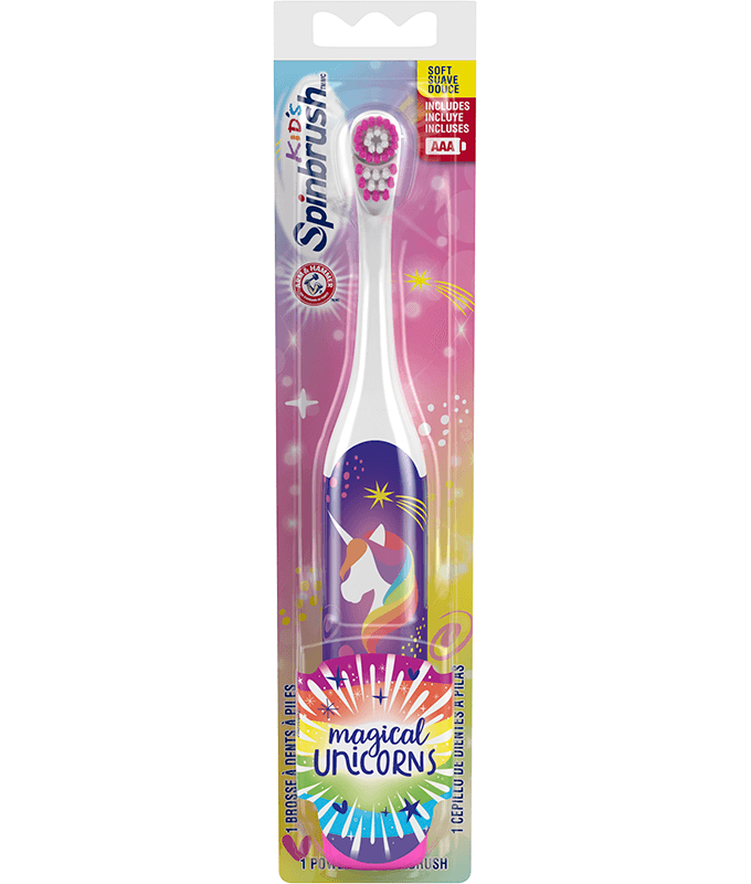 • Kids brush 38% longer when using a Spinbrush™ battery-powered toothbrush*