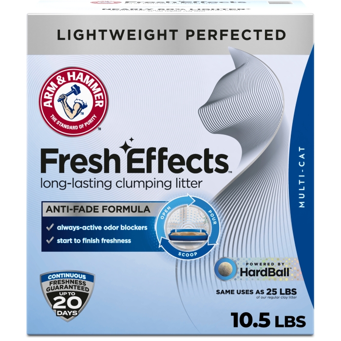 ARM & HAMMER™ Lightweight Cat Litter is 50% lighter than our regular litter and is 99.9% dust free. Super-fast wetness absorption after kitty uses the box - allowing you to scoop out clumps of urine right away. Works fast to trap, seal, and control cat urine odors fast with unique Desert Dry Minerals. Whether you and your feline friend prefer scented or unscented, ARM & HAMMER™ Cat Litter has the purr-fect litter for you.