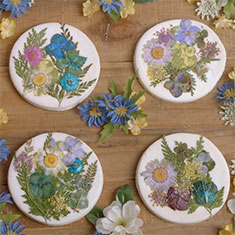 - Add a layer of Mod Podge® over the top of your coaster and place your flower(s) on top.