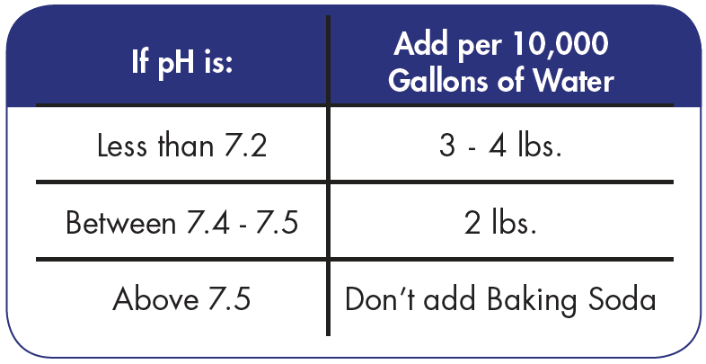 During the swimming pool season, measure the pH & alkalinity and add ARM & HAMMER Baking Soda as indicated below: