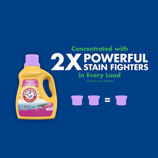 - CONCENTRATED WITH 2X POWERFUL STAIN FIGHTERS IN EVERY LOAD vs. leading value detergent. This formulation uses less water than the prior formula, which means that you get can expect a power-packed clean out of every bottle and great results on wash day