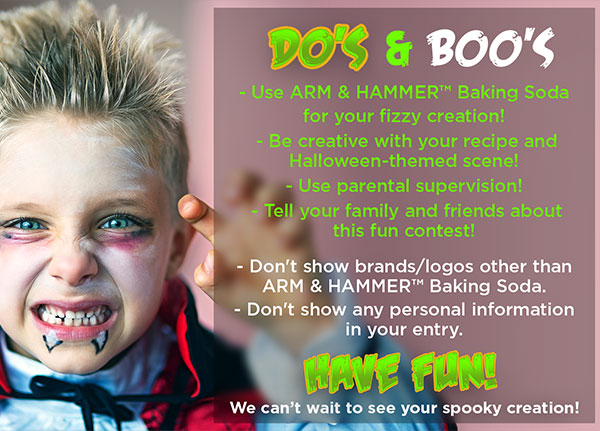 Haz tu propia creación para Halloween Fizz con bicarbonato ARM & HAMMER™ para obtener una chance de ganar $2,000 para ti y otros $2,000 para tu escuela.