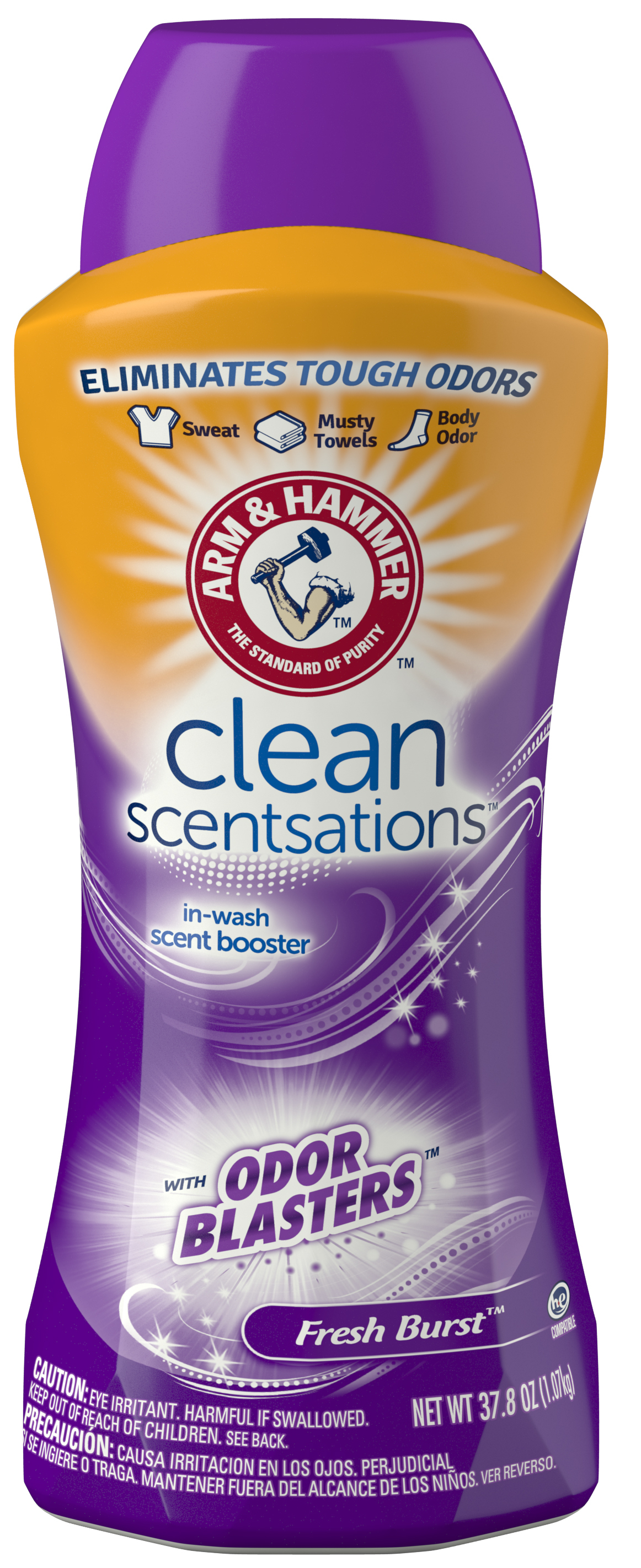 - POWERED BY PURE ARM & HAMMER BAKING SODA. Our laundry scent booster with Odor Blasters is blended with the trusted power of odor-absorbing ARM & HAMMER Baking Soda. This laundry scent booster powers out tough odors to deliver a burst of freshness to your laundry