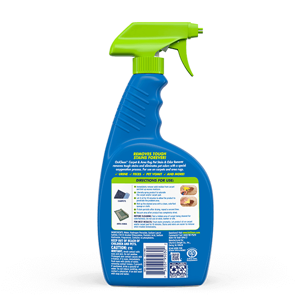 OxiClean™ Carpet & Area Rug Pet Stain & Odor Remover is a carpet stain remover made specifically to remove tough pet stains forever and eliminate pet odors. It is for use on carpets, not in the laundry.